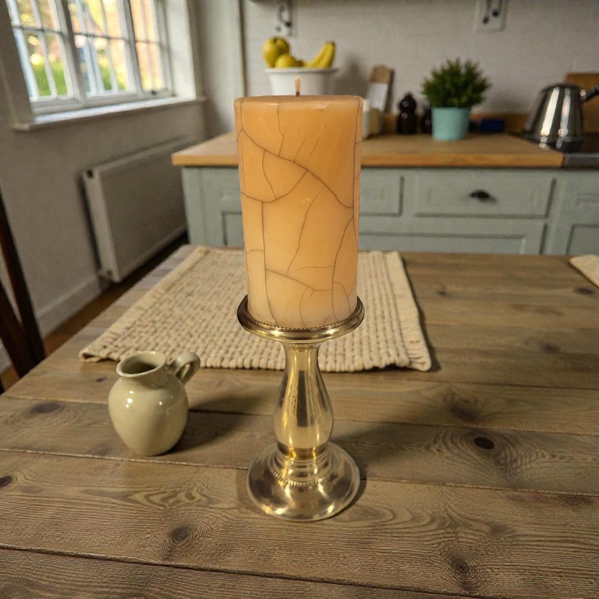 Perfect for everyday décor or special occasions, this brass pillar candle holder brings understated charm and warmth to any room.