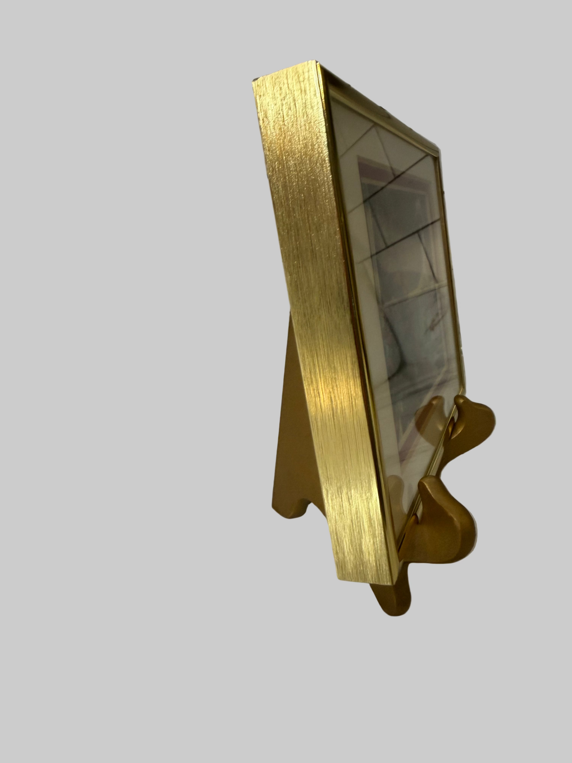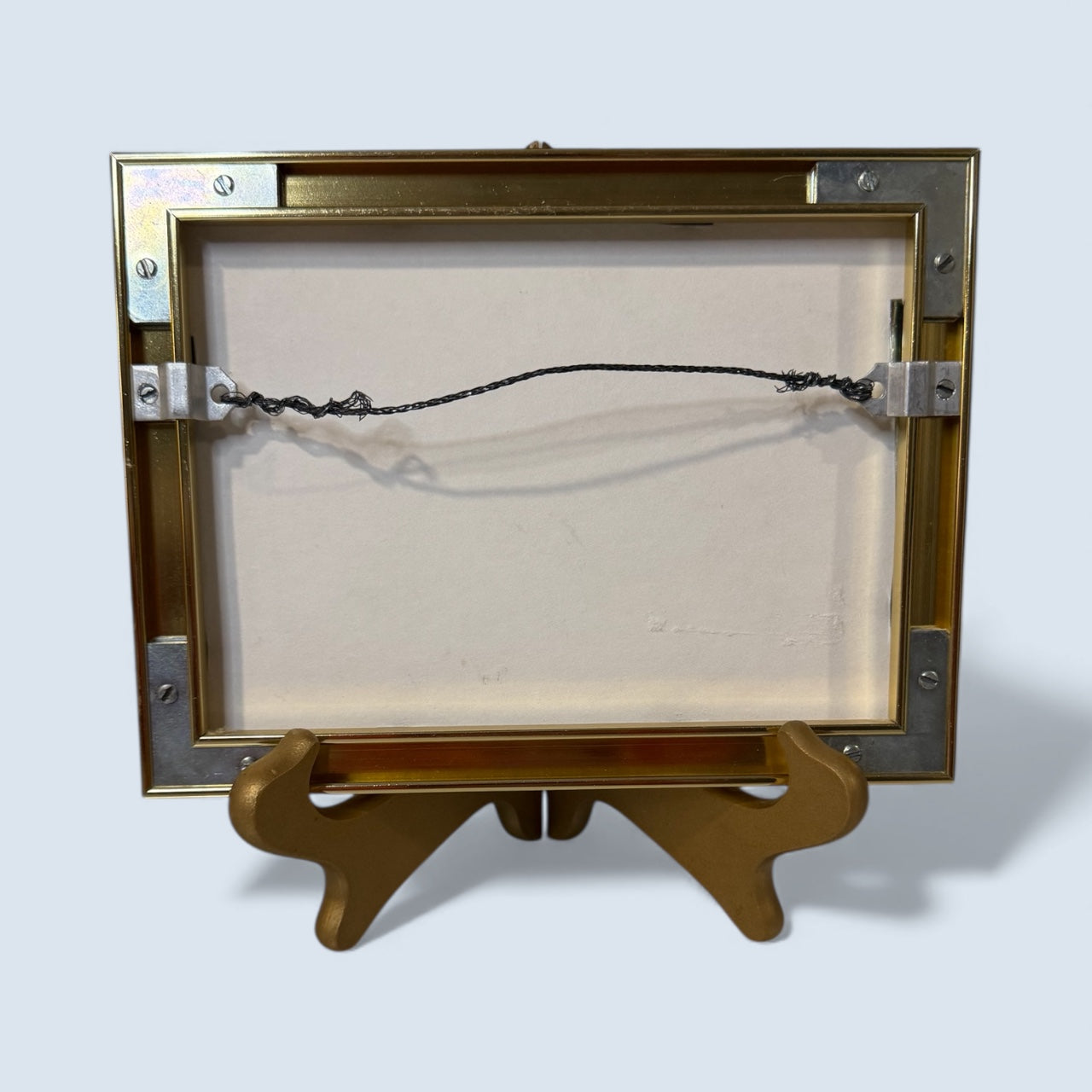 This print comes in a gold metal frame that appears to be professionally framed, giving it a clean, polished presentation. Its smaller size makes it perfect for layering with other artworks or displaying on a shelf, vanity, or accent wall.