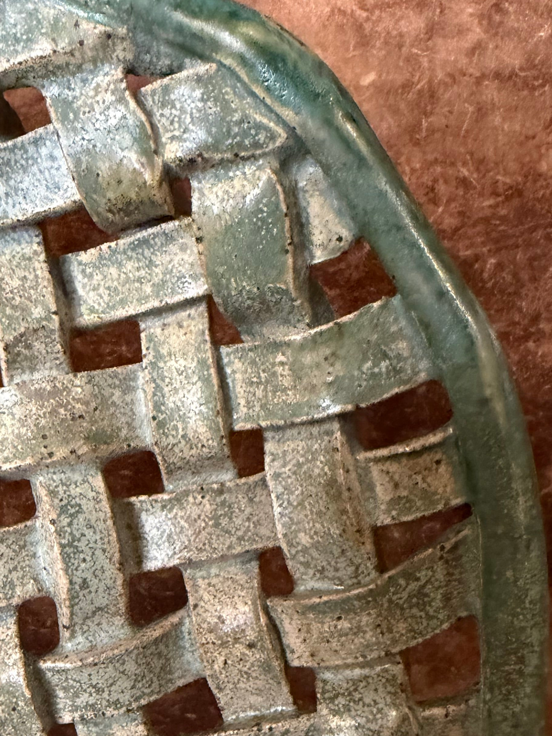 Bring a touch of artisan charm to your home with this handmade rustic pottery basket bowl. Crafted with a woven ceramic design, this piece beautifully mimics a traditional wicker basket while offering the durability and timelessness of glazed pottery. The color is stunning!