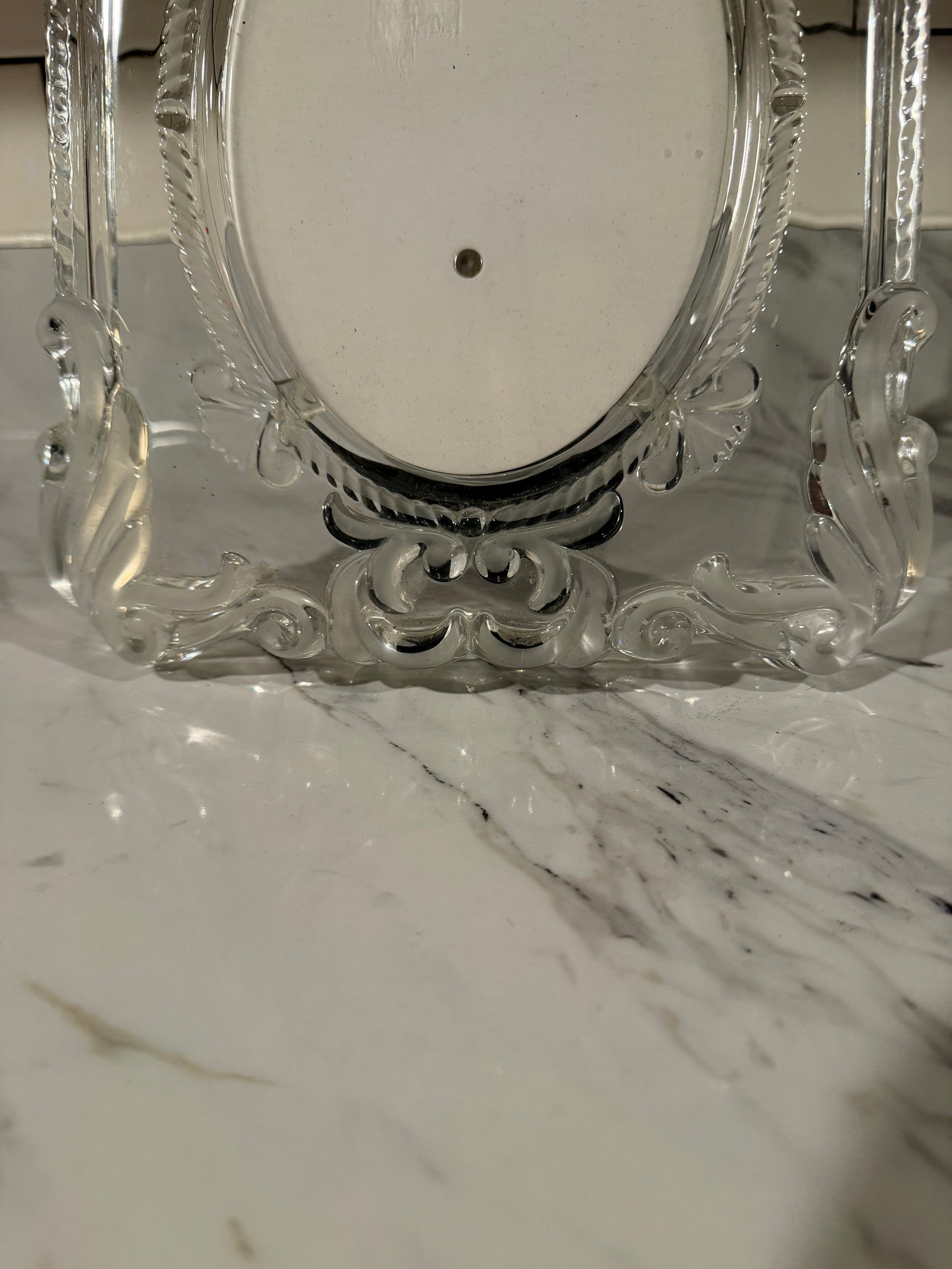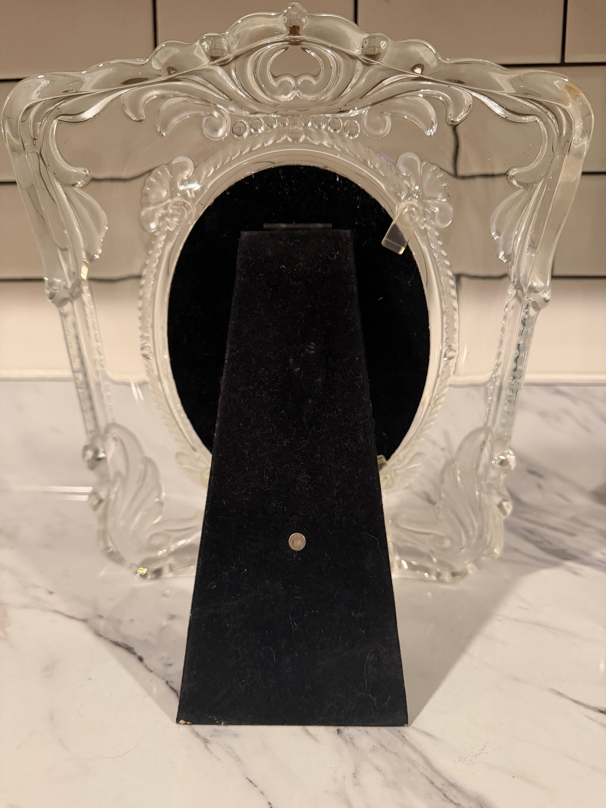 Showcase your most treasured memories with timeless elegance. This vintage MIKASA picture frame features a gorgeous combination of frosted and clear glass, beautifully catching the light from every angle. The oval photo opening offers a classic style, making it perfect for wedding portraits, family photos, or a special gift.
