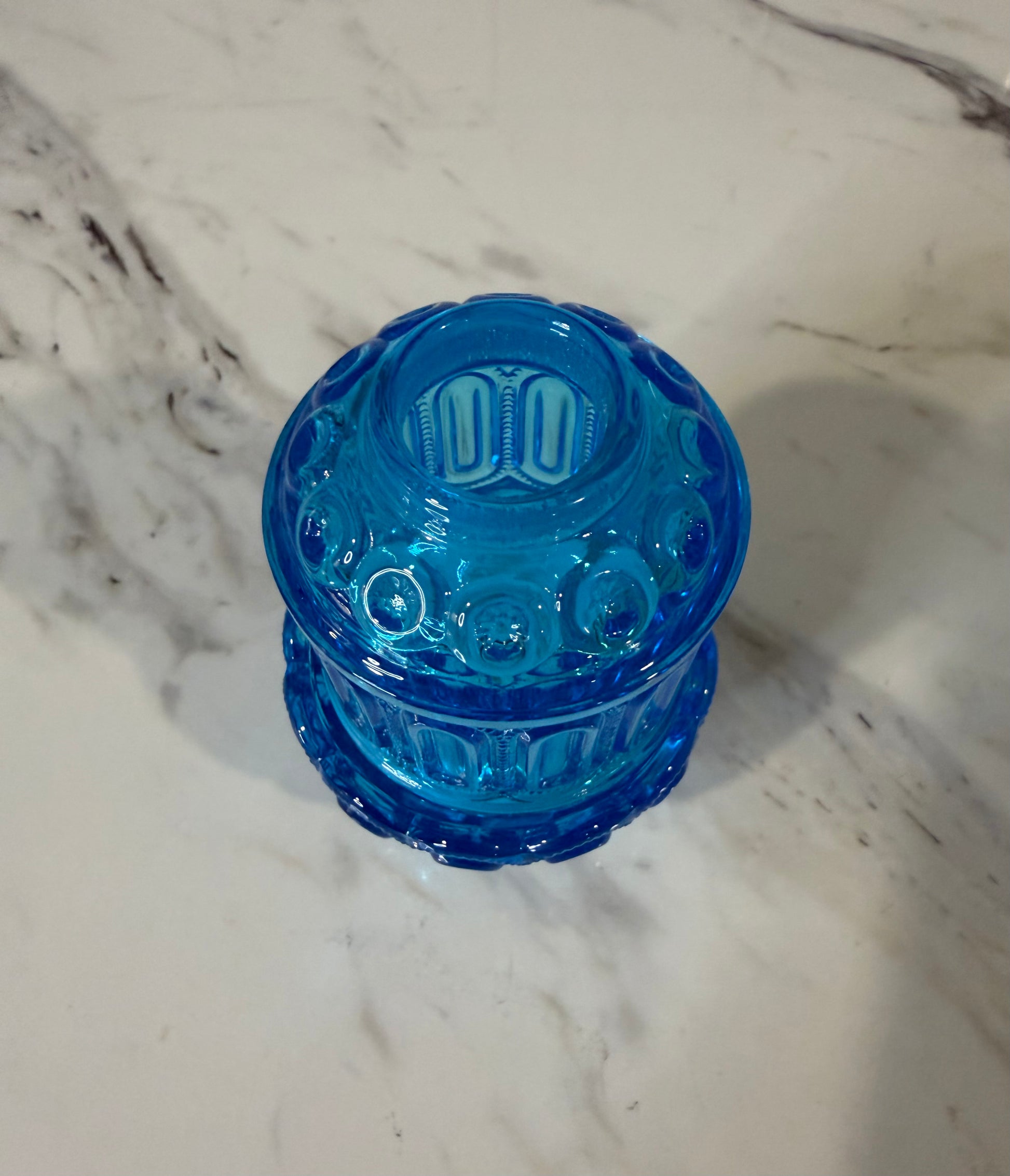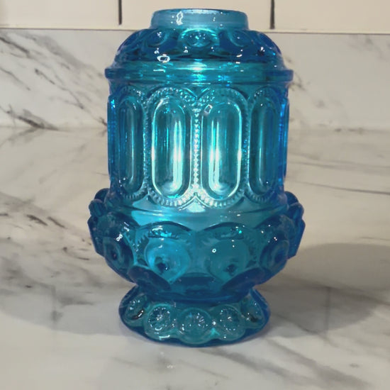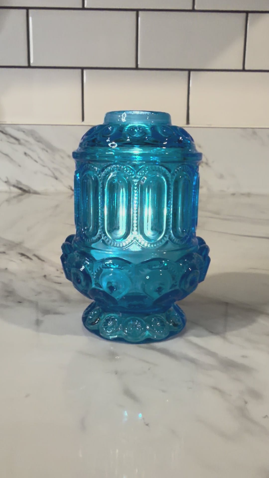 This Colonial Blue Weishar Moon & Star Fairy Lamp features rich blue pressed glass and a classic two-piece design that softly glows with tea light. A charming collectible that’s small but eye-catching — perfect for shelves, nightstands, or cozy décor displays!