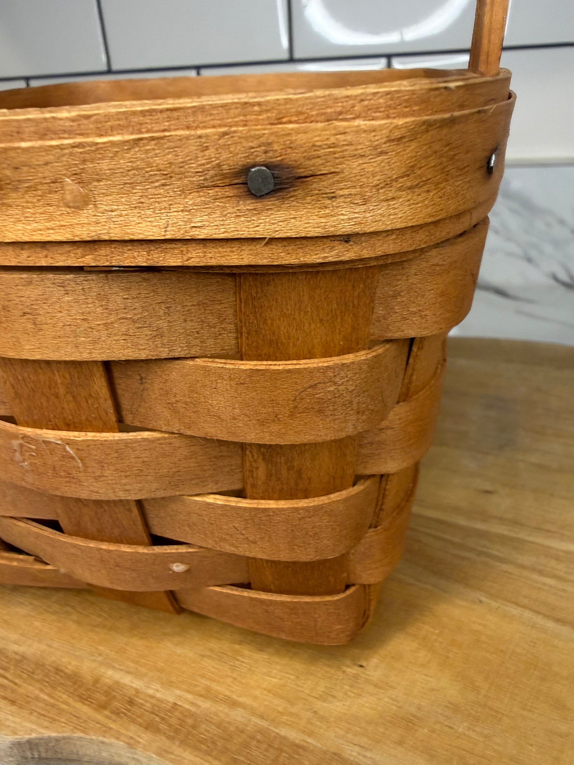 Vintage 1988 Longaberger Peg Basket – Handwoven Maple Wood