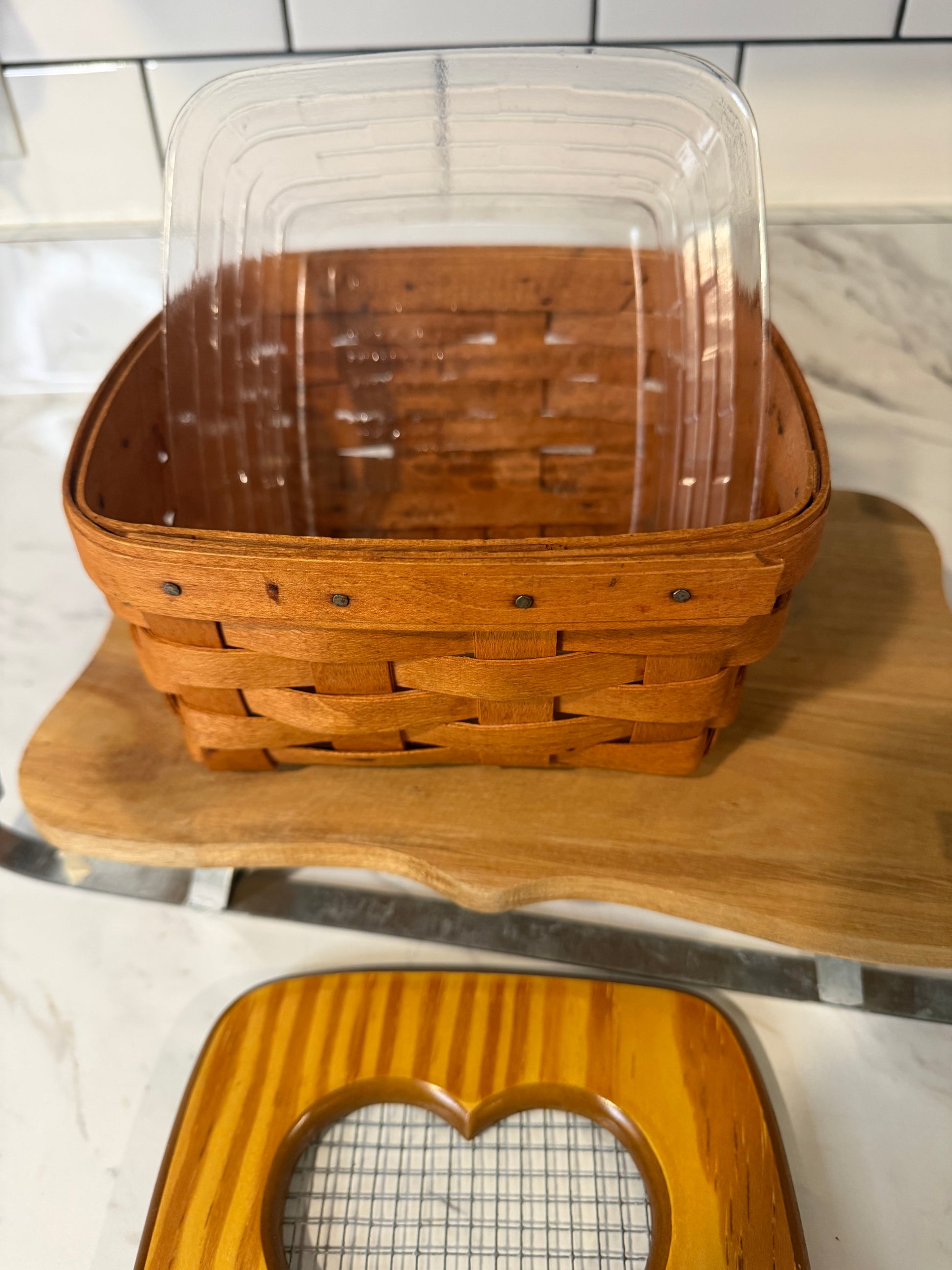 Vintage 1991 Longaberger Heart Basket with Wood Lid & Plastic Insert