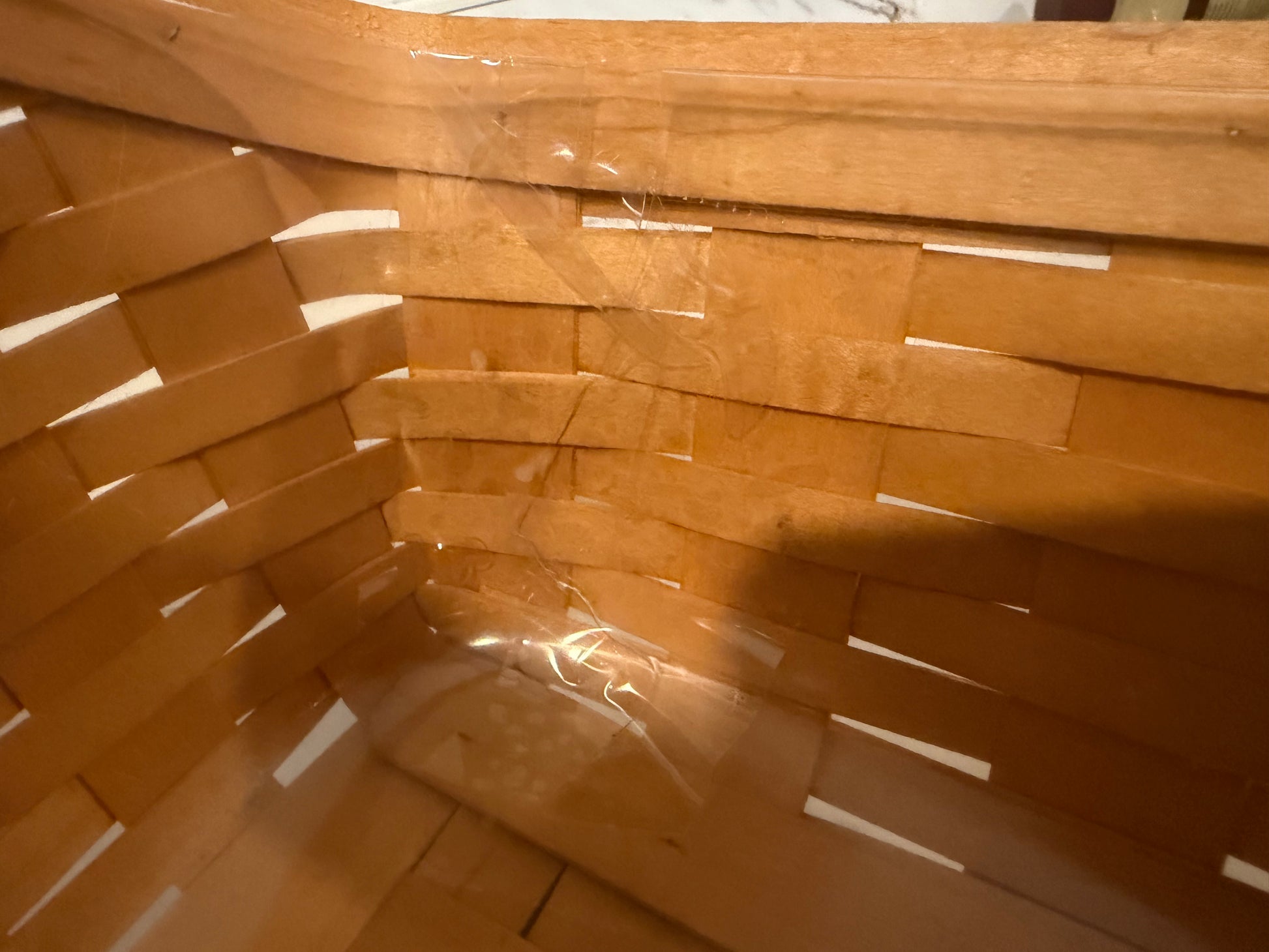 - Comes with the plastic lining inside of it. Lining is cracked in one corner, but has been taped. Shown in last picture