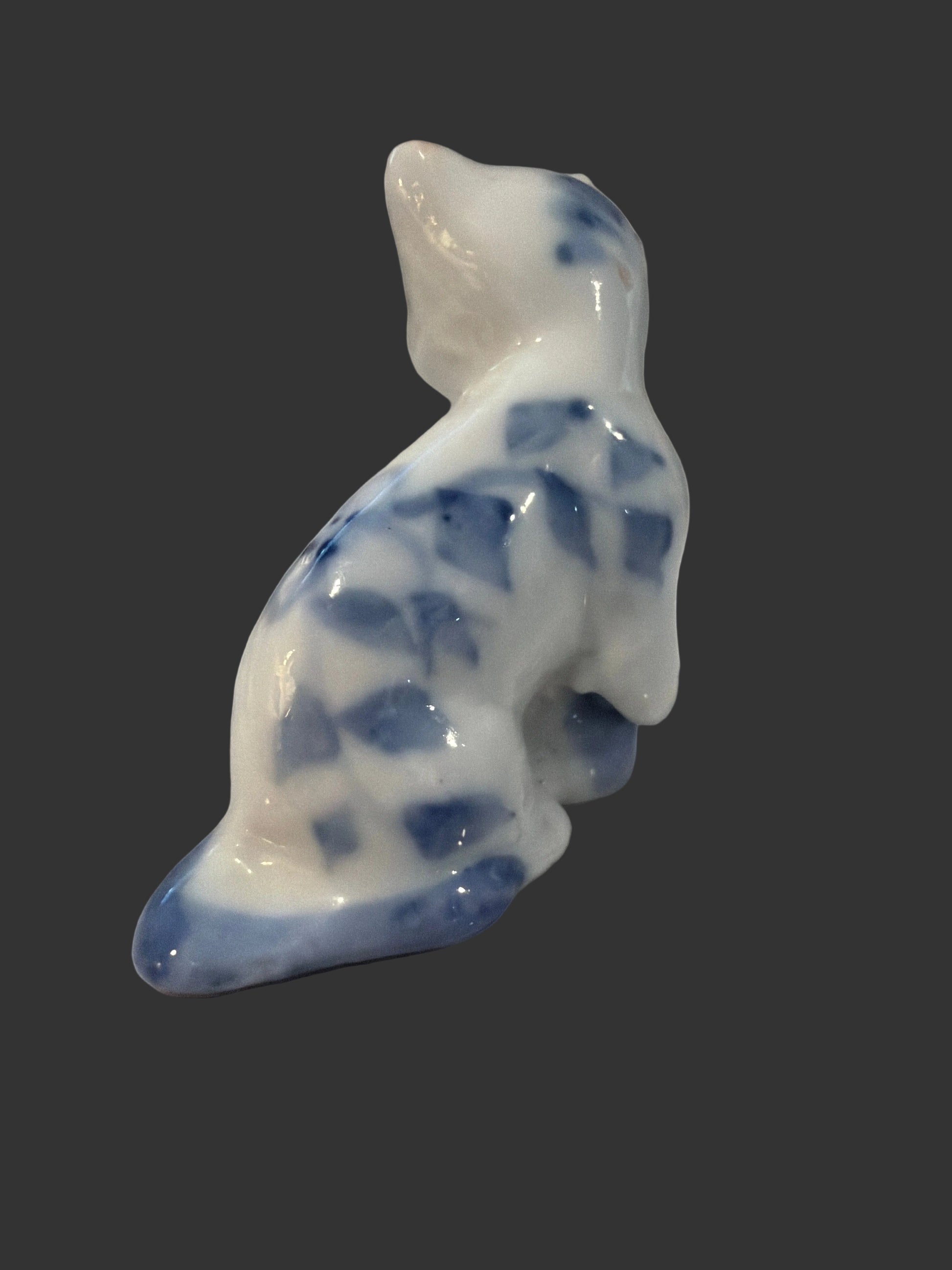 Miniature Vintage Delft Blue & White Porcelain Cat Figurine