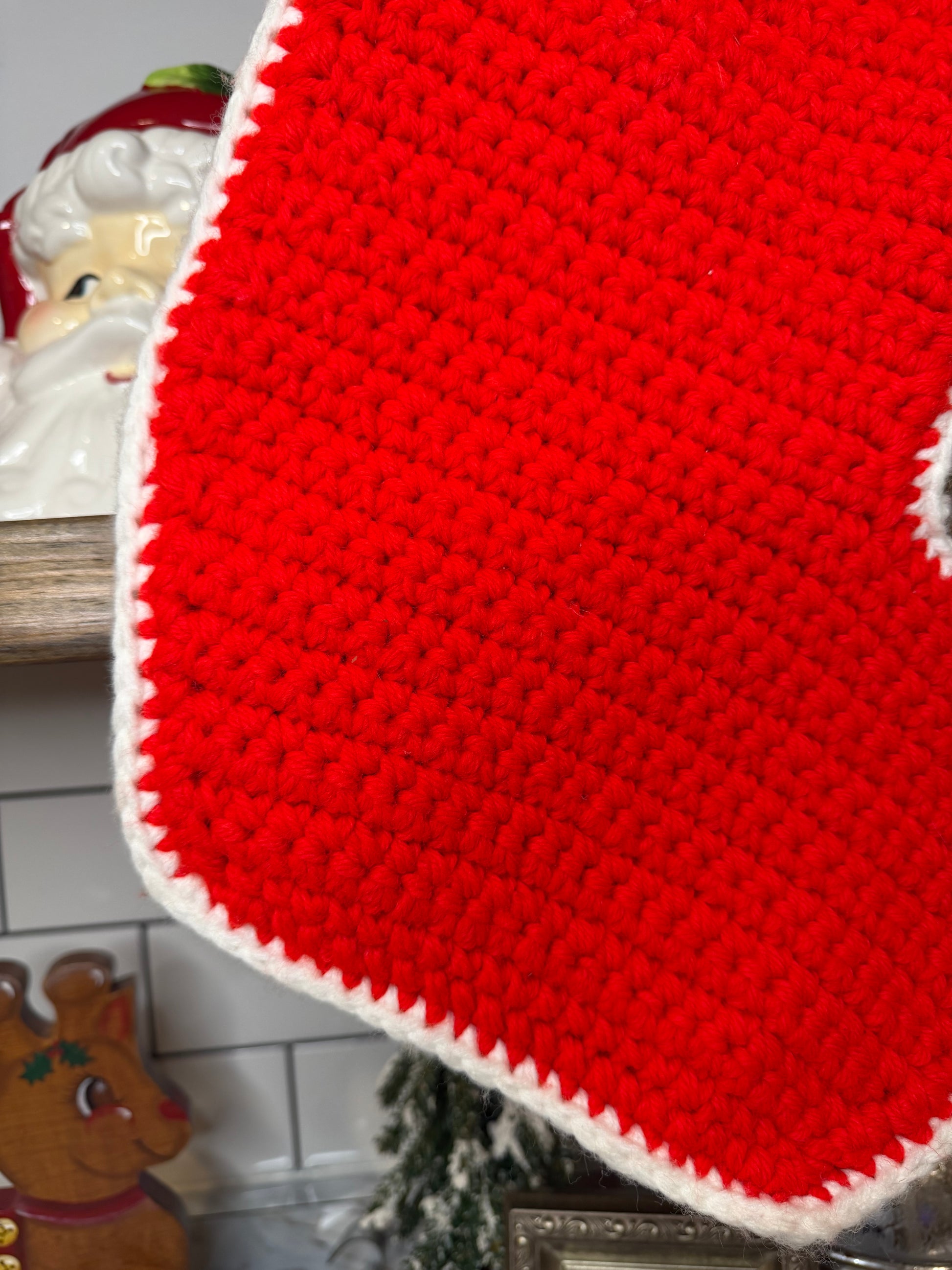 Add a charming vintage touch to your holiday décor with this hand-crocheted Christmas stocking! Crafted from red yarn with classic white trim, this large stocking measures 19 inches long by 11 inches wide at the base, making it perfect for hanging on a mantel, staircase, or as part of a festive holiday display.