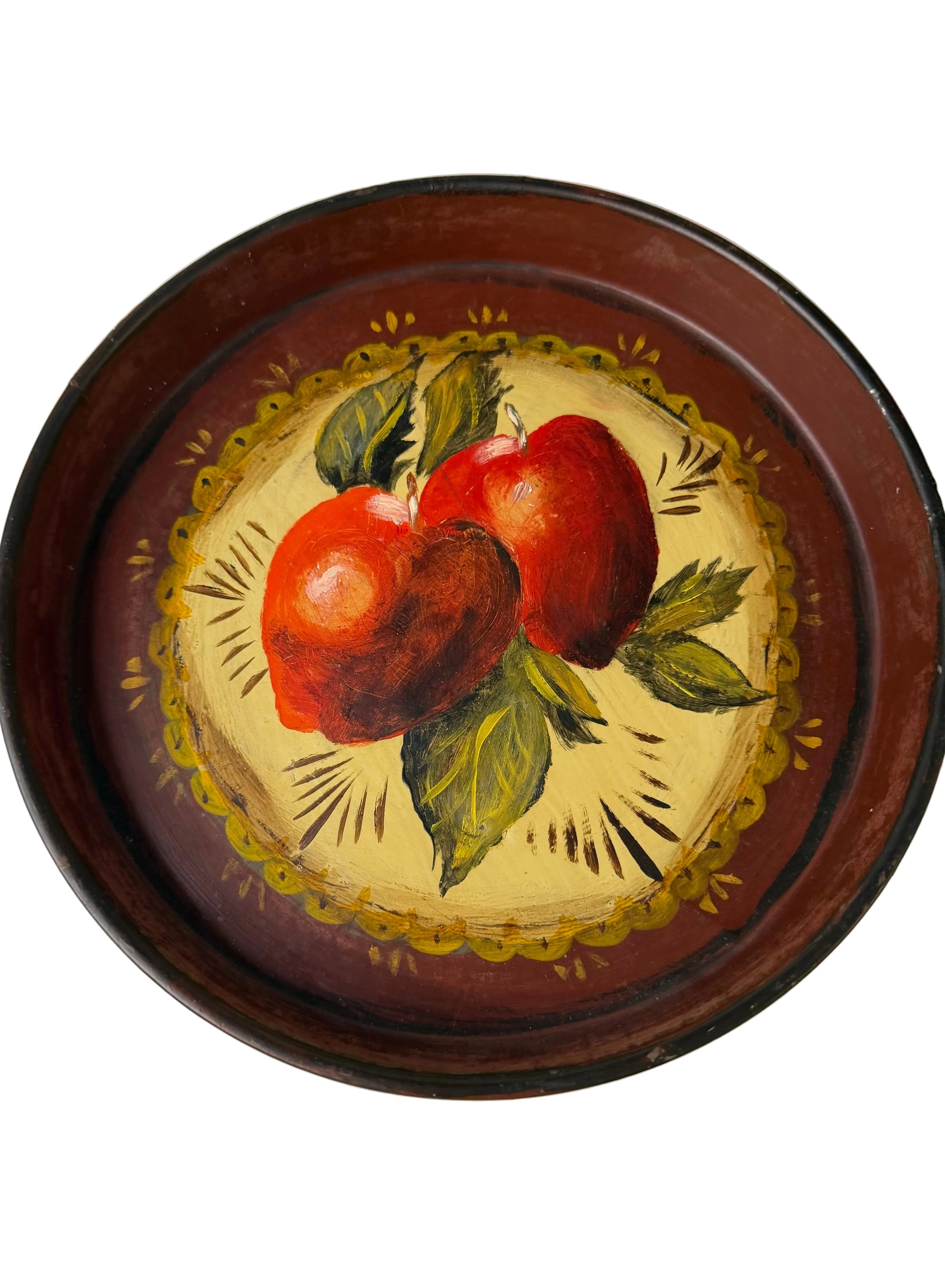 Vintage Hand-Painted Toleware Tray – Folk Art Apple Design, 1974