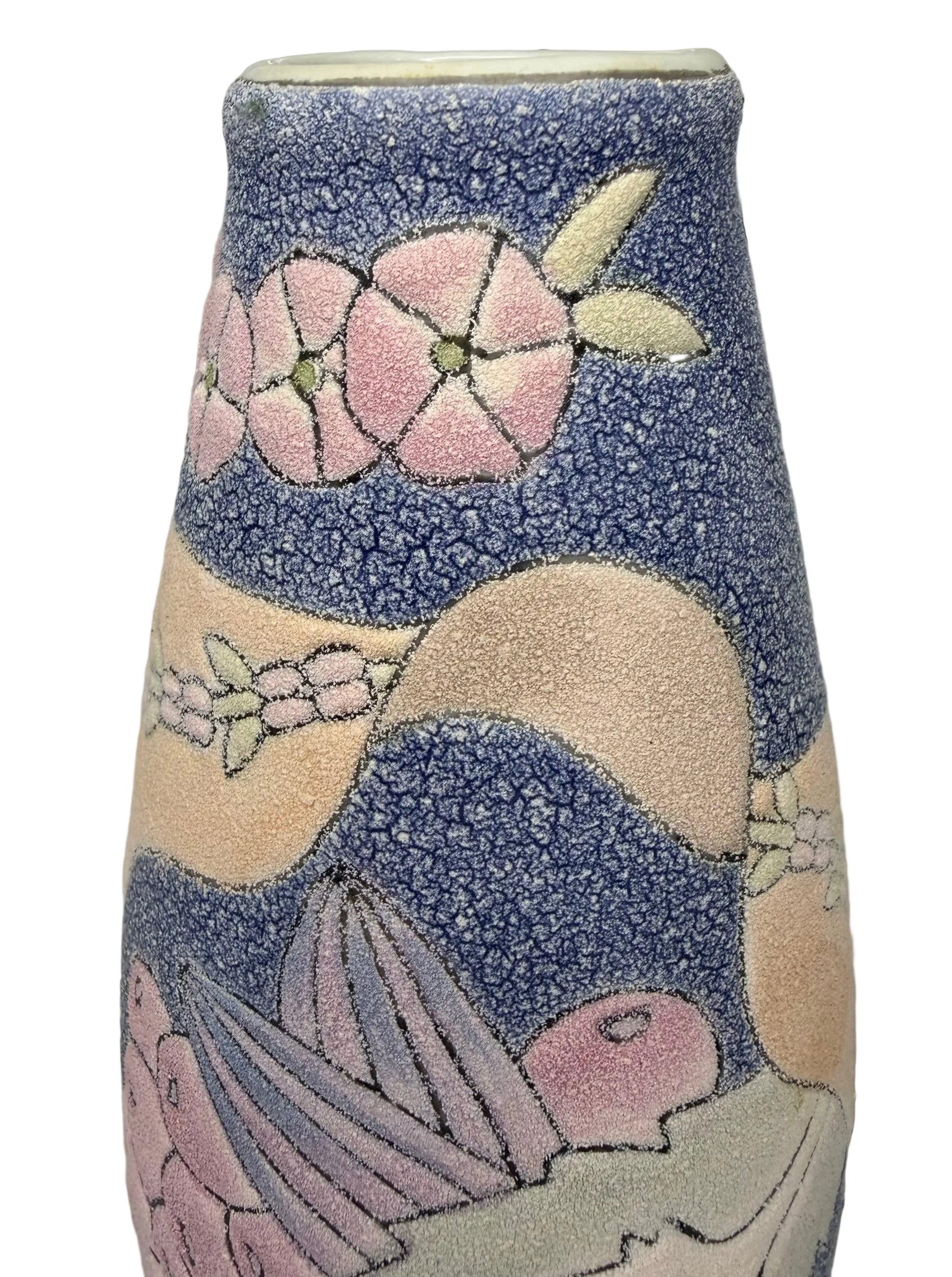 Vintage High-Relief Ceramic Vase – Hand-Painted Floral & Fruit Design