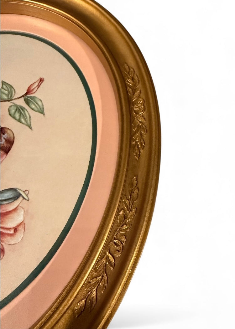 Vintage Homco Home Interiors Bird Prints in Oval Gold-Tone Frames (Set of 2) | Circa 1983