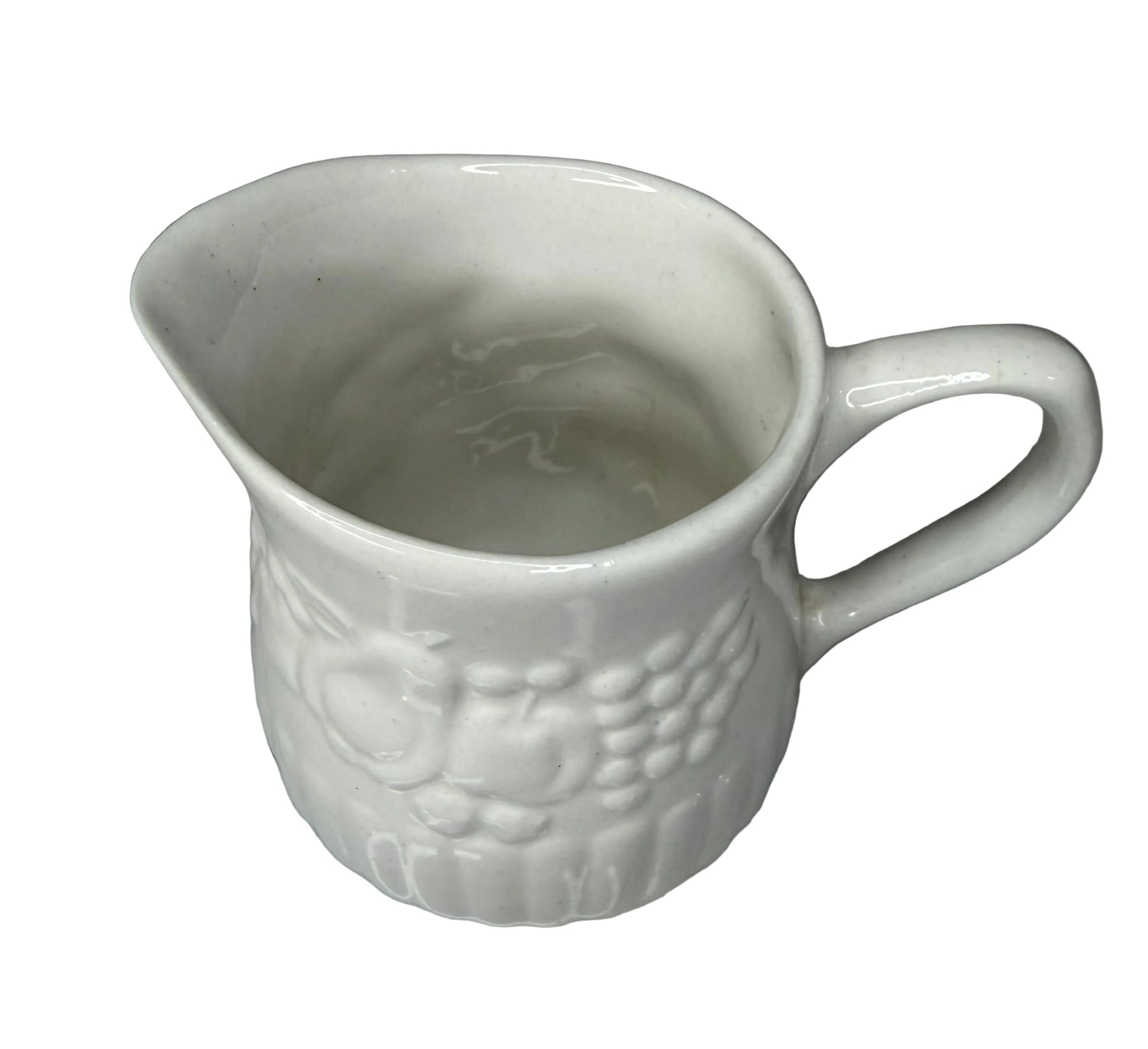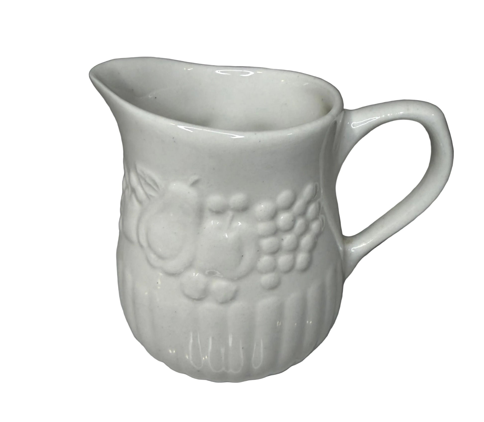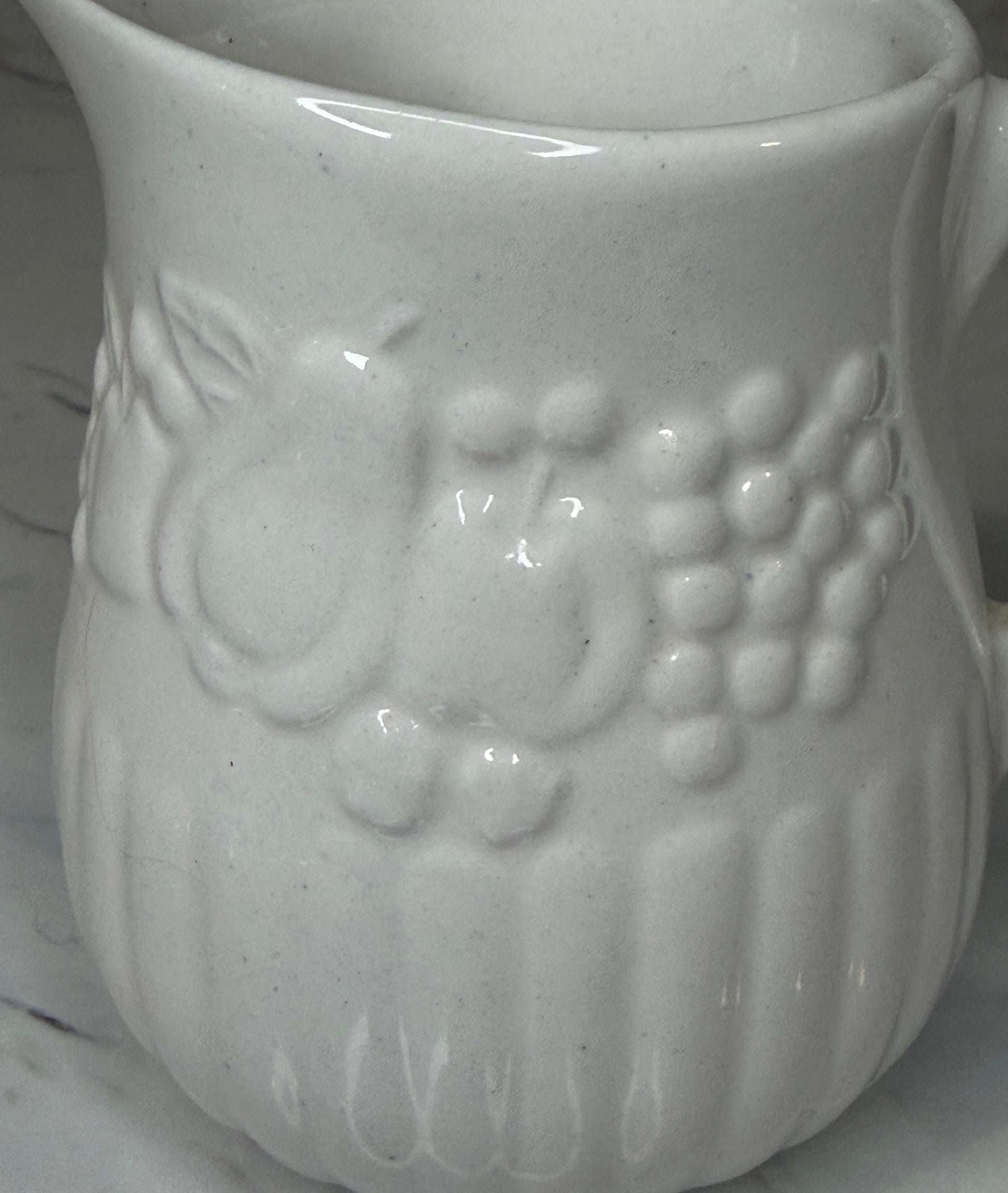 Vintage Libbey White Ceramic Creamer – Embossed Fruit Pattern, 1970s