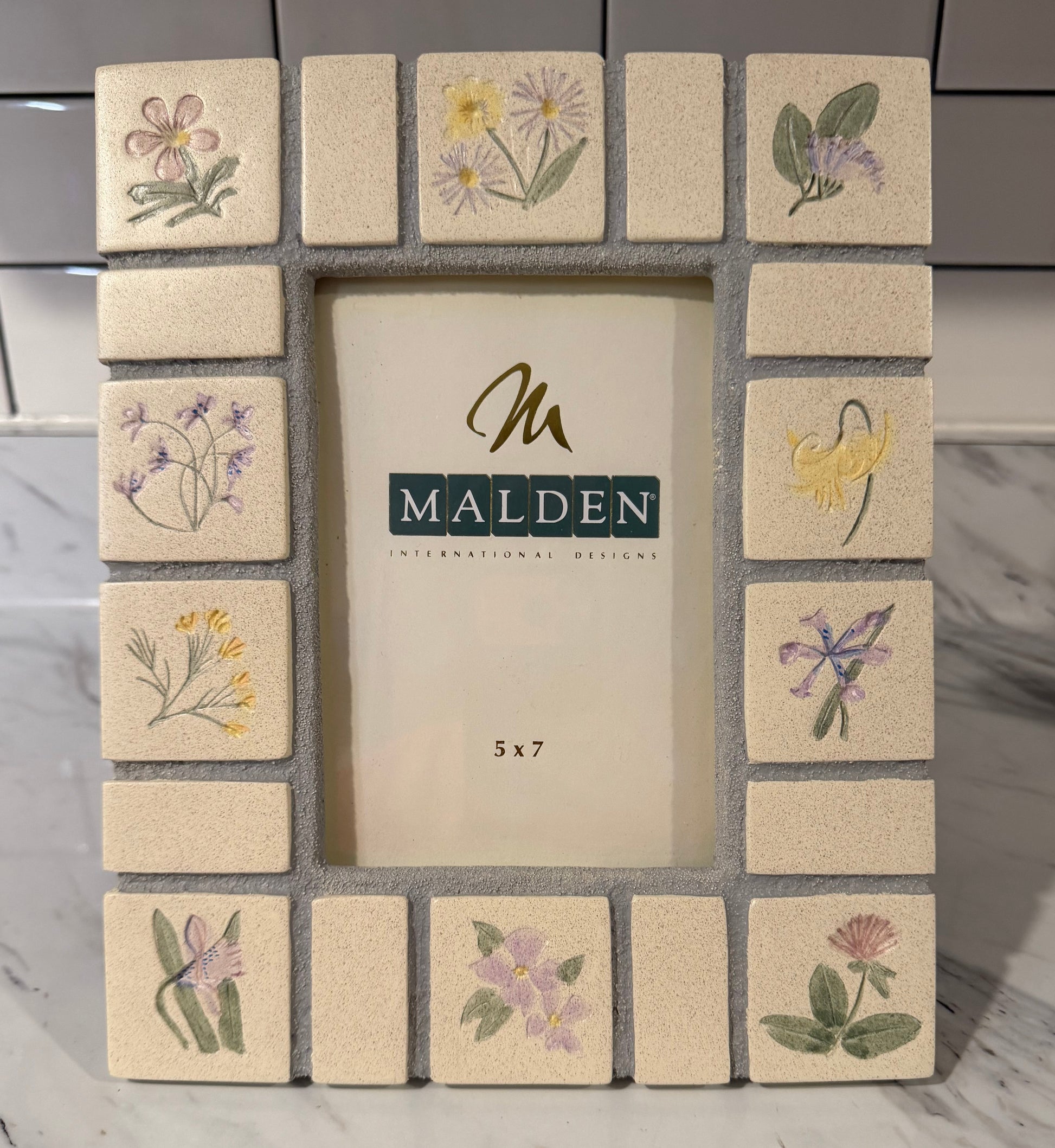 Vintage Malden International Designs Ceramic Picture Frame – Hand-Painted Wildflower Tiles