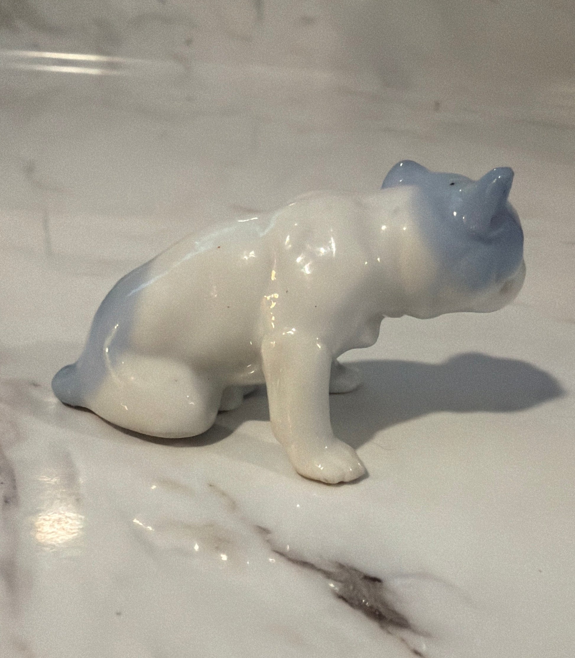 Add a charming little companion to your collection with this vintage ceramic English bulldog figurine. Measuring approximately 1.25 inches tall and 2 inches long, this tiny collectible is likely made in Japan and features sweet, detailed craftsmanship. Perfect for collectors of miniature animals, dog lovers, or as a whimsical accent for shelves, desks, or display cases.