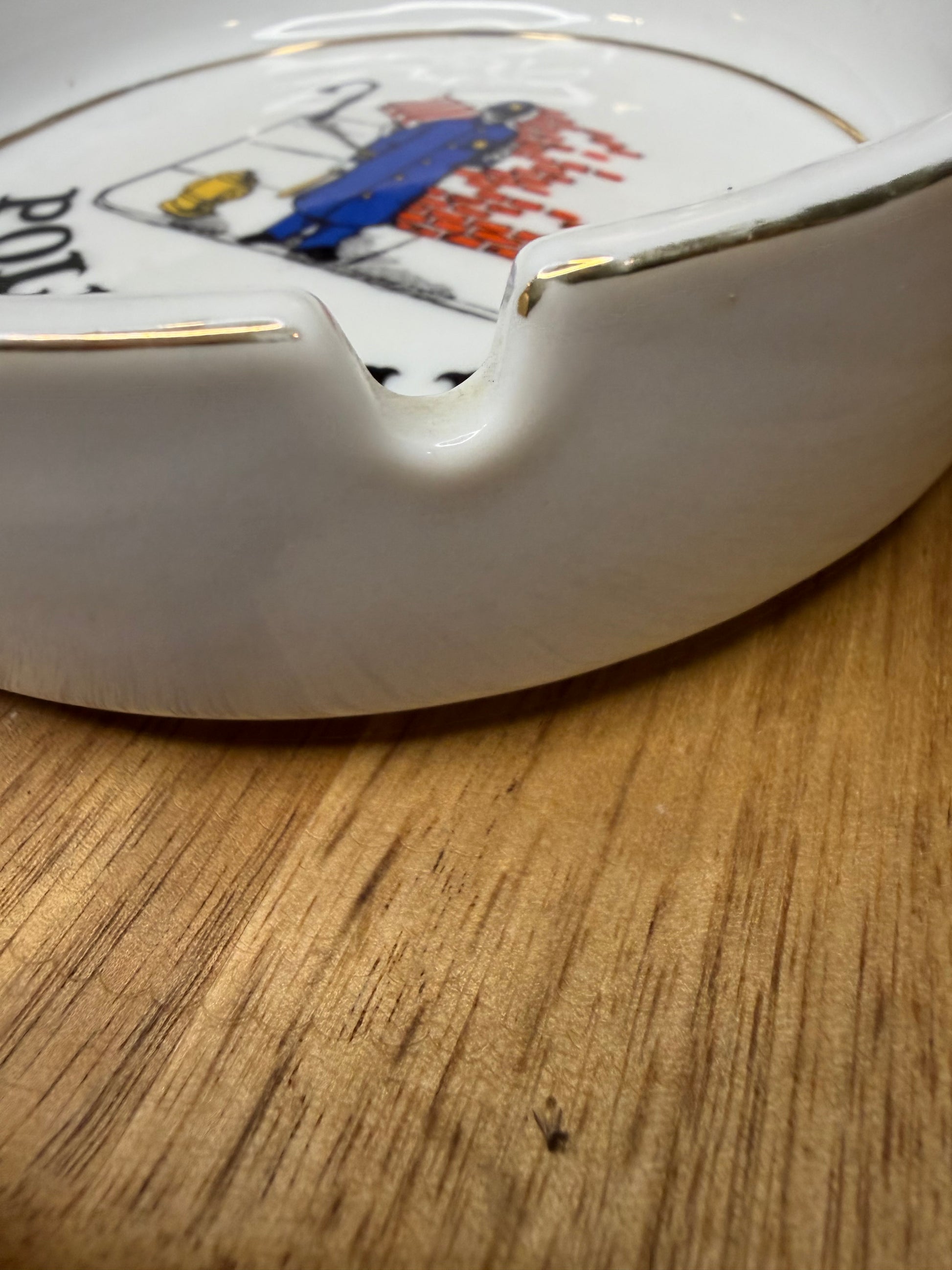 Add a dose of mid-century humor to your vintage décor with this whimsical novelty ashtray featuring a cartoon-style “policeman” illustration. Likely dating from the mid-20th century, this piece blends classic barware charm with the playful, slightly satirical artwork that defined the era.