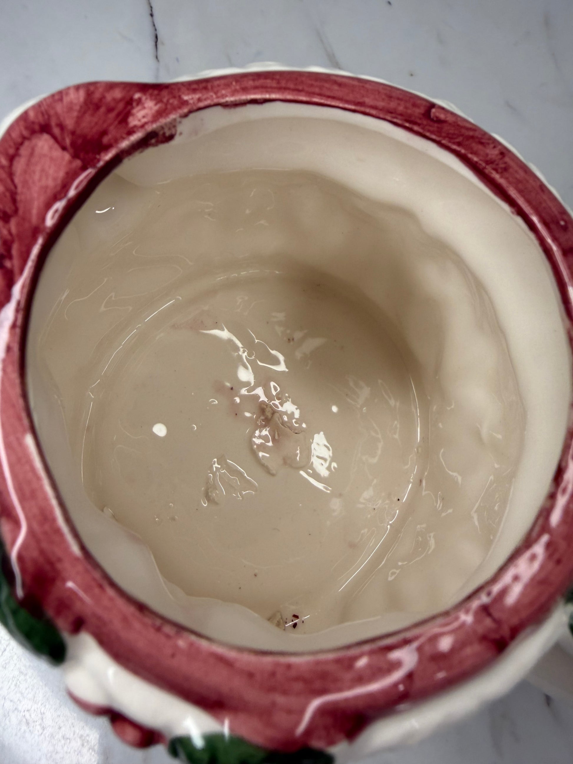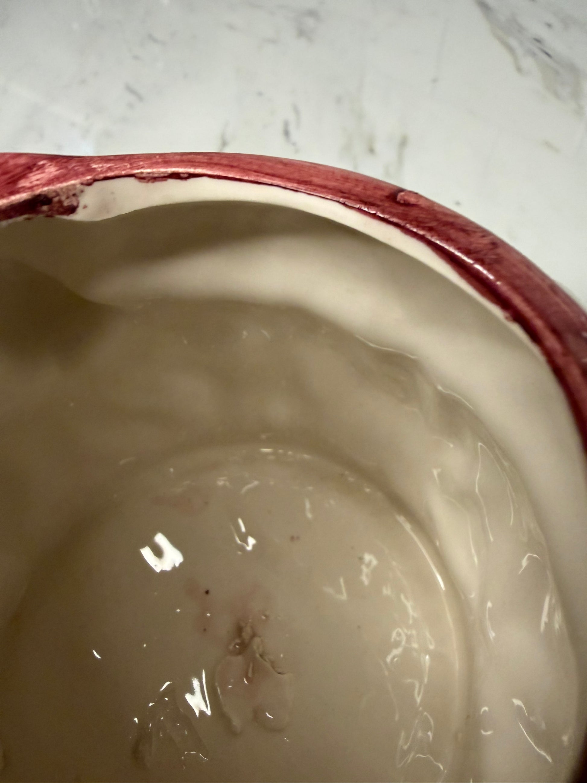 Crafted in slip-cast ceramic, this unmarked piece shows natural variation from the original production process. A slightly textured area on the interior base is typical of slip-cast ceramics and adds to its authentic, handcrafted charm.