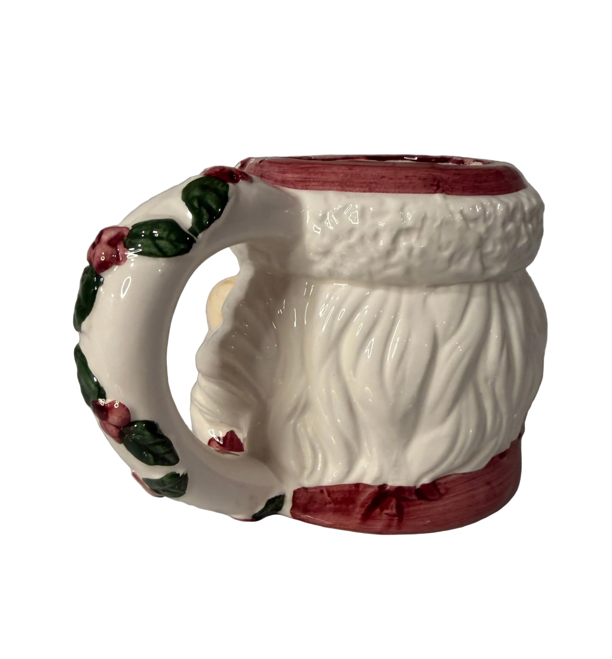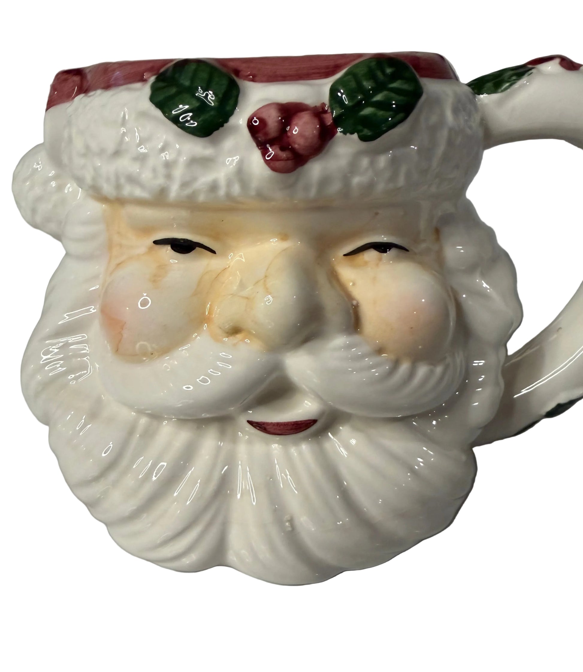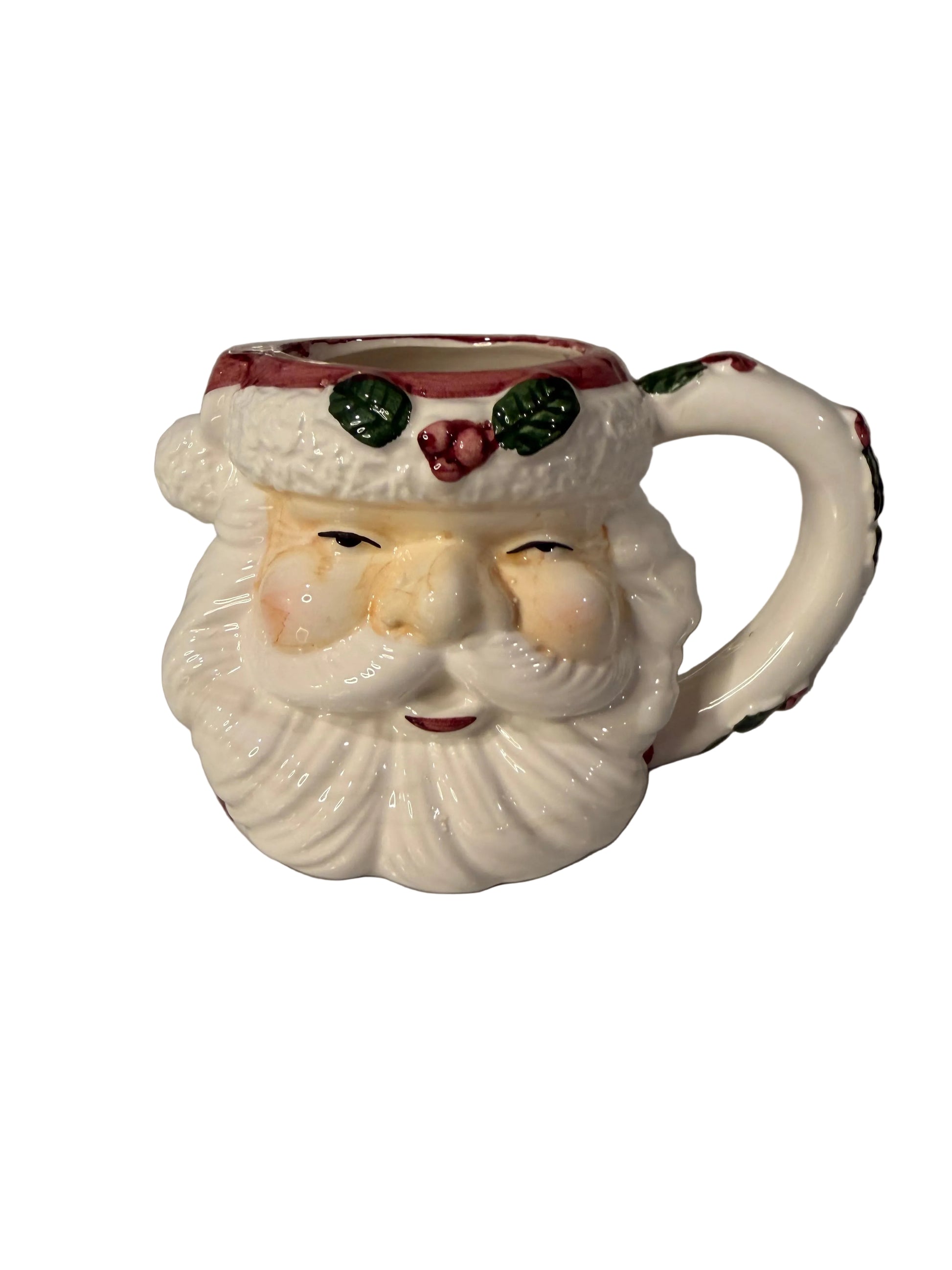 Vintage Slip-Cast Ceramic Santa Claus with Rosy Cheeks & Mistletoe