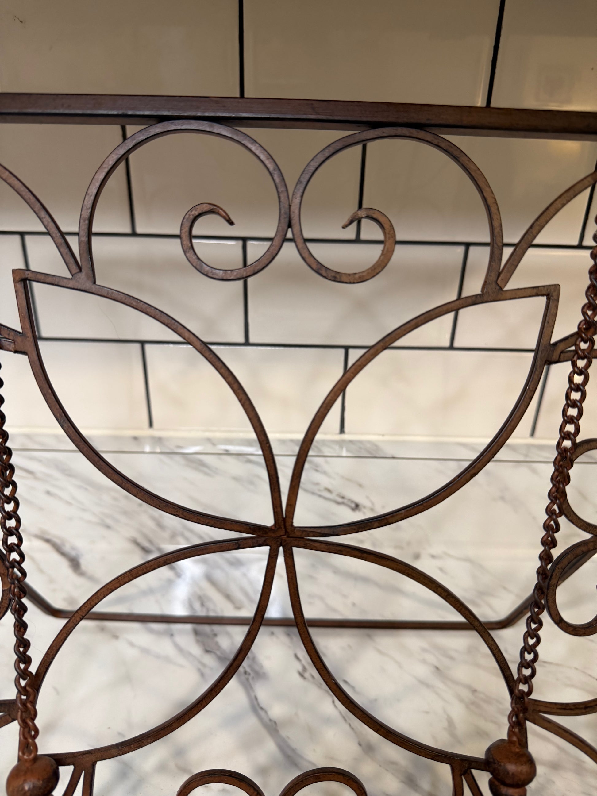 - Style: Wrought iron or cast iron look with an antique brown finish