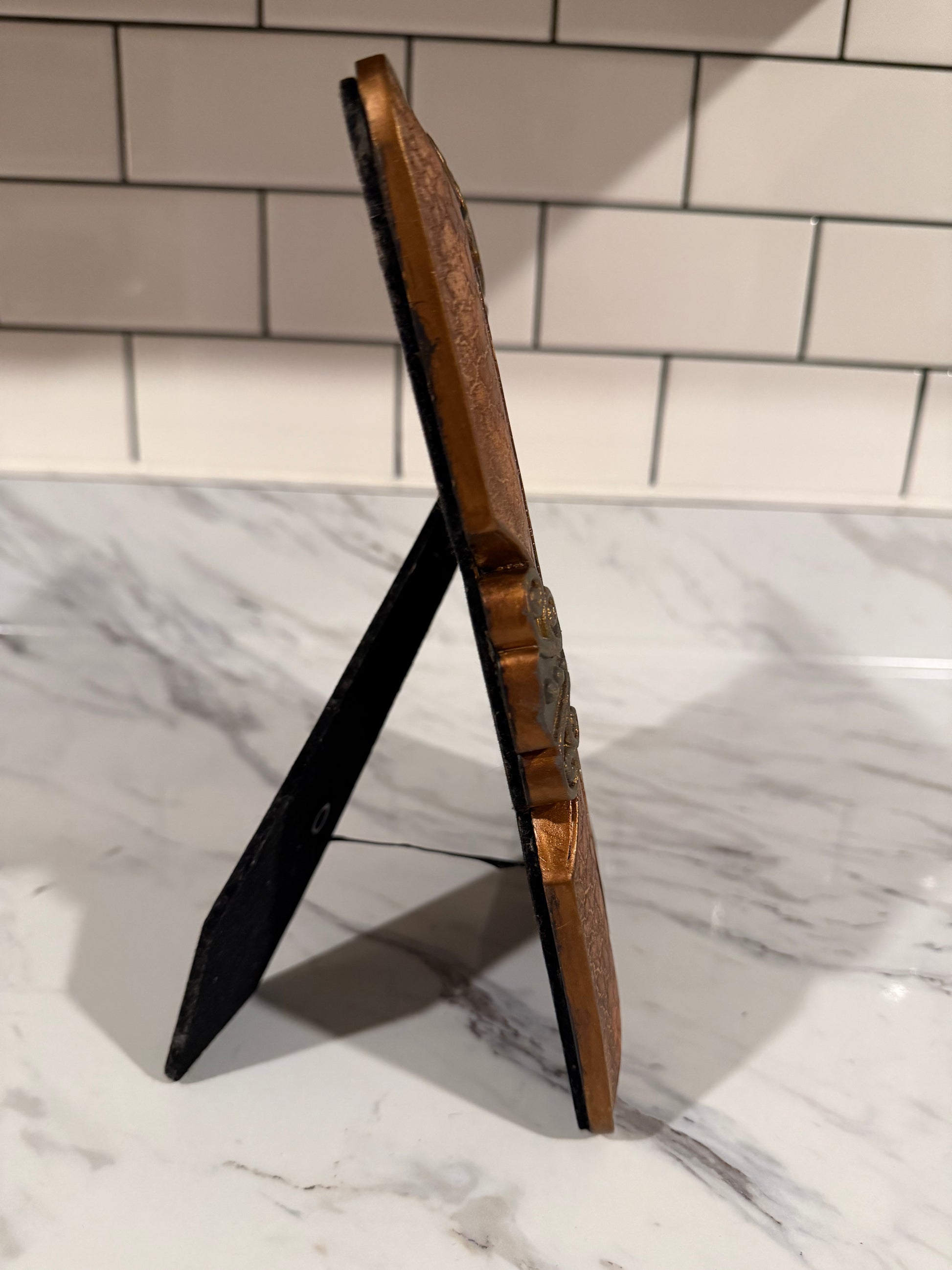 Add timeless charm to your décor with this beautifully detailed vintage-style ornate picture frame. The distressed bronze-copper finish gives it a warm, antique look, while the metal scrollwork accents add a touch of elegant artistry.