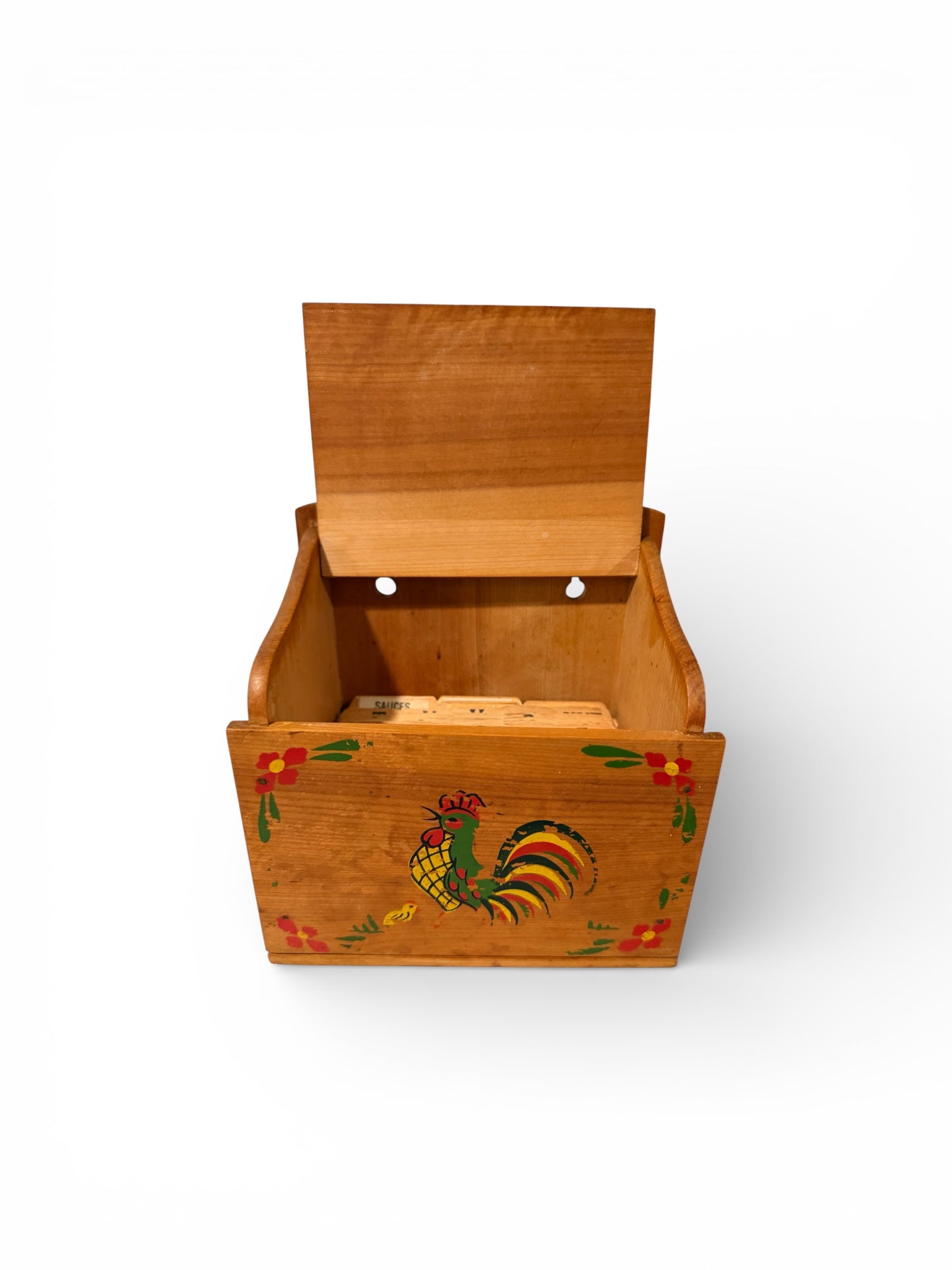 Vintage Wooden Recipe Box – Rooster Folk Art Kitchen Canister