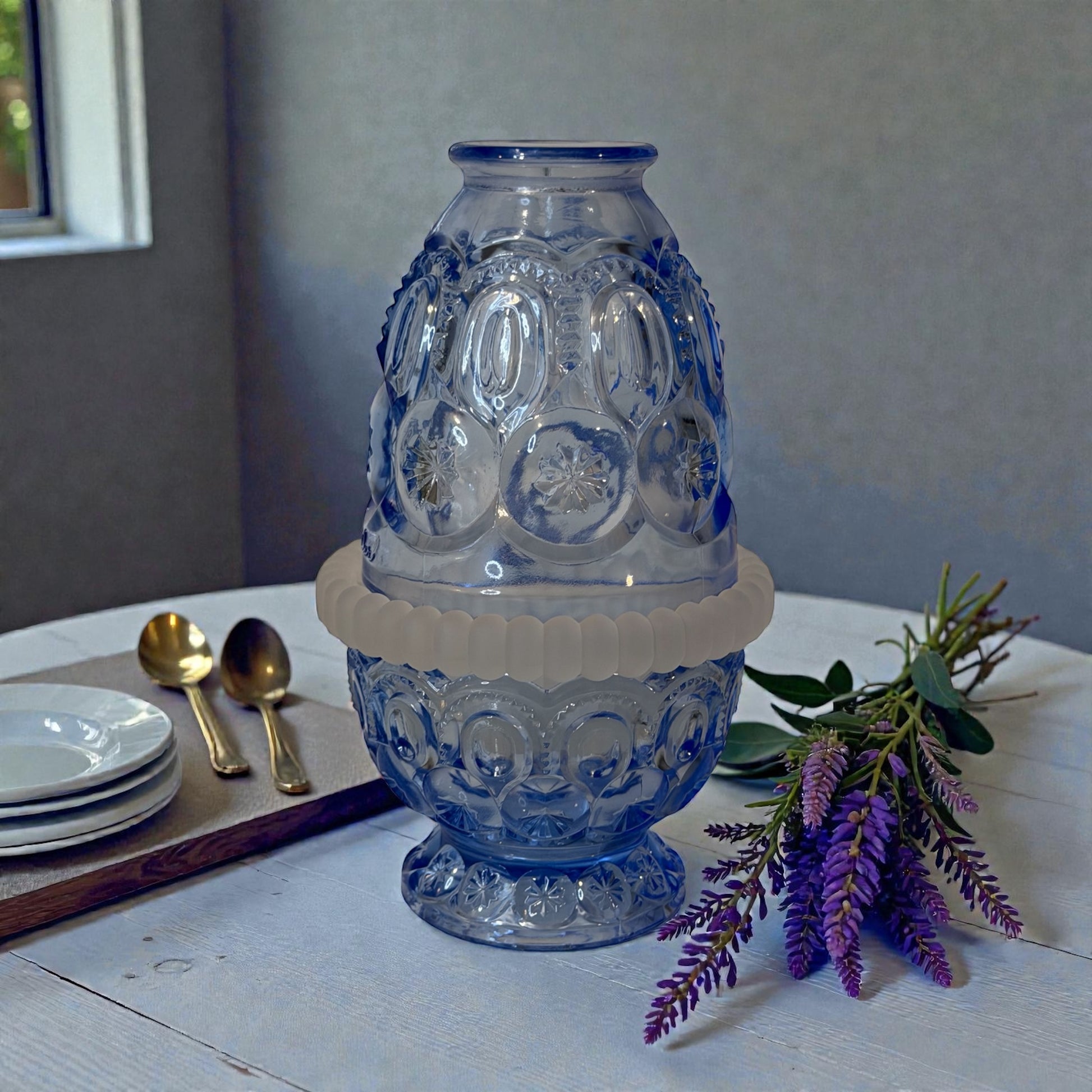 Add a touch of vintage glow to your space with this beautiful Weishar Moon & Star fairy lamp in kimberlite blue. Made in the U.S.A., this classic three-piece fairy lamp is both decorative and functional, casting a warm, magical light when illuminated with a candle.